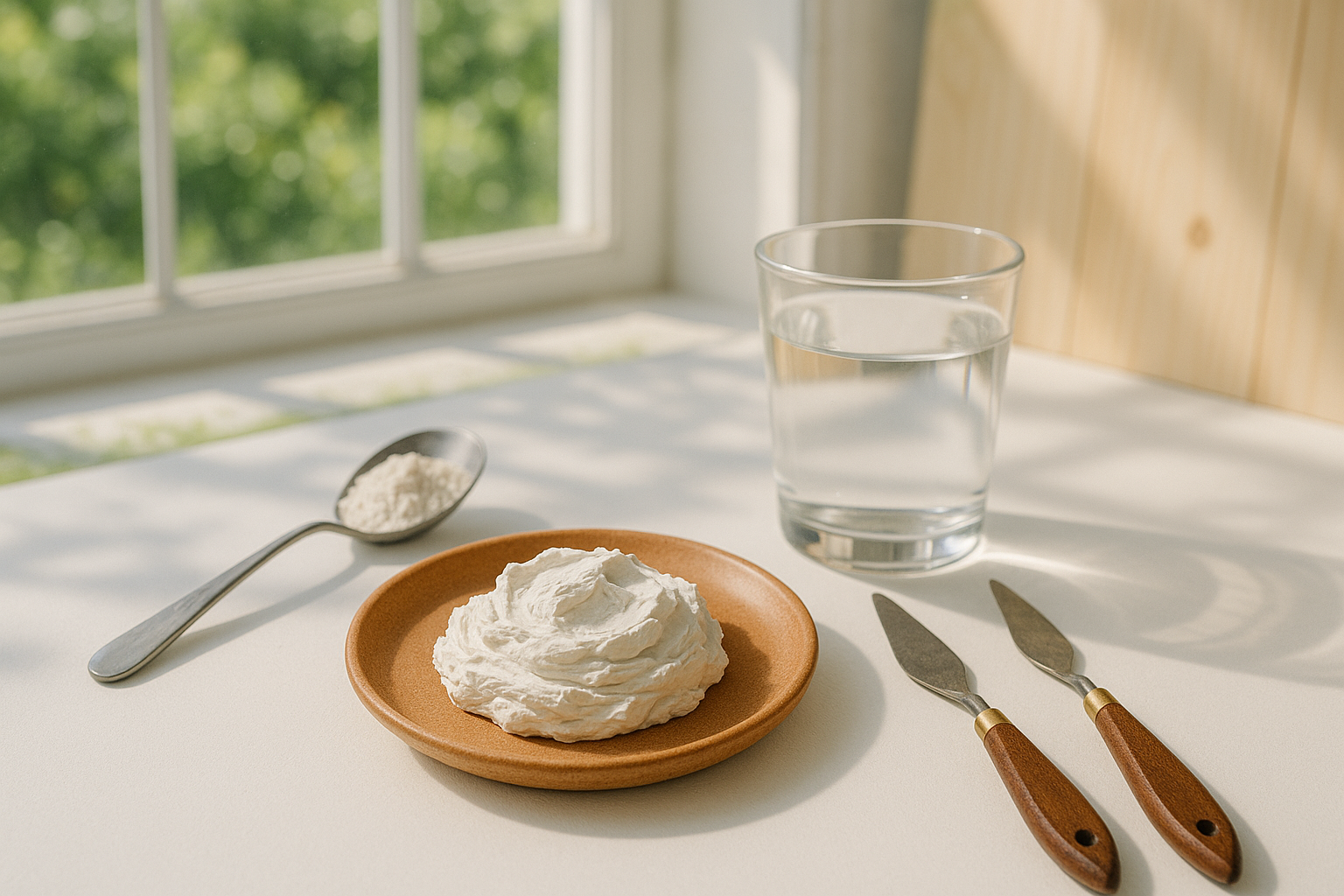 Water does more than just help with cleanup. It thins your compound if it gets too thick and acts as a gentle lubricant between your fingers and the surface. That slip allows you to shape, blend, or thin out areas without the compound sticking to your hands.